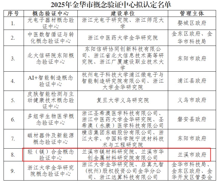 - 喜报!兰溪市镁材料研究院创成金华...2025-12-11